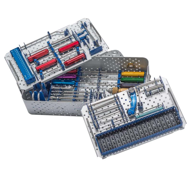 ACL ToolBox, modern ACL rekonstrüksiyonlarının gereksinimlerine uyacak şekilde özel olarak tasarlanmıştır. Aerodinamik üç katmanlı kasa, yaygın ACL prosedürlerinin çoğunu tamamlamak için gereken tüm yeniden kullanılabilir araçları içermektedir ve özelleştirme için ek bir “pin mat” alanını içermektedir. ACL Araç Kutusu, femoral ACL delme için ayak izi kılavuzları gibi sıkça kullanılan Kılavuz Sistemi’ne sahiptir. Değişken matkap manşonları da dahil olmak üzere tüm teknikler için uygun olan standart 2,4 mm pinler, 3,0 mm Pinler ve 3,5 mm ile kullanılabilir. Greft alma, çentik hazırlama, tünel delme, greft geçirme ve sabitleme dahil olmak üzere ACL rekonstrüksiyonunu tamamlamak için gereken tüm araçlar bu kutuda bulunabilir.